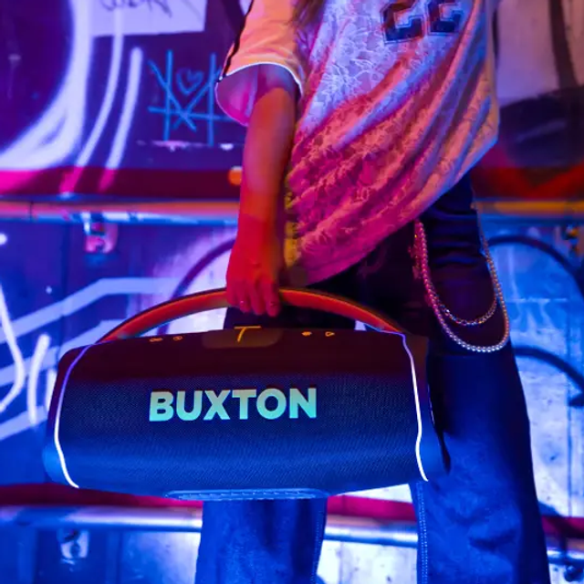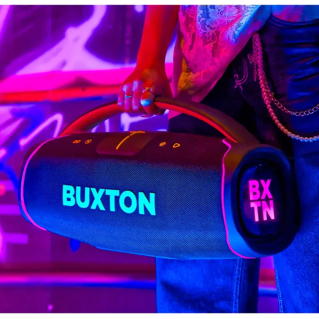 BT reproduktor Buxton BBS 880 BATTLEFIELD sa postará o skvelú zábavu na každej párty s priateľmi či rodinou. Zvuk si môžete prispôsobiť stlačením tlačidla ekvalizéra s 3 prednastavenými režimami (normálny, bass, jazz). S obrovským výstupným výkonom 280 W a dosahom Bluetooth pripojenia až 15 m vám nič nebráni vychutnať si aktuálne hity s naozaj dunivými basmi, ktoré rozozvučia sálu. Jednou z výhod reproduktora sú integrované svetelné efekty, ktoré prehĺbia váš hudobný zážitok. Ohromujúci vizuálny zážitok umocní atmosféru každej párty. Moderný vzhľad produktu podčiarkuje poťah z odolnej prémiovej tkaniny. Reproduktor je vybavený batériou s kapacitou 27000 mAh / 3,7 V, ktorá zaistí až 8 hodín počúvania vašej obľúbenej hudby. Veľmi rýchle nabíjanie až 45 W zaisťuje nepretržitú zábavu.