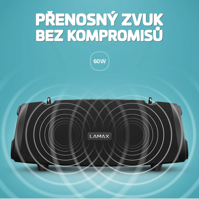 Bluetooth reproduktor LAMAX Eclipse1 vás bude pri akejkoľvek príležitosti sprevádzať skvelým zvukom s výkonom až 60 W. Ergonomické vyhotovenie s dodávaným popruhom sa postará o ľahké prenášanie. Dvojpásmový reproduktor je vybavený dobíjacou batériou s kapacitou 4 500 mAh ktorá vystačí až na 9,5 hodiny prehrávania. So svojím telefónom reproduktor LAMAX Eclipse1 ľahko spárujete pomocou Bluetooth 5.3. V prípade potreby je možné spárovať dva reproduktory LAMAX Eclipse1 a vychutnať si skutočne priestorový zvuk. Na vytvorenie tej správnej atmosféry budete mať LED podsvietenie s piatimi nastaviteľnými efektmi.