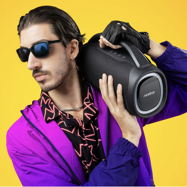 Bluetooth reproduktor Niceboy Vulcan je vybavený kvalitnými meničmi, ktoré dodávajú 80 W výkon. Okrem toho sa môžete spoľahnúť až na 12-hodinovú výdrž. Praktická robustná rukoväť uľahčí prenášanie reproduktora. Bohatá konektivita a prehľadne umiestnené ovládacie prvky uľahčia používanie reproduktora Niceboy Vulcan. S reproduktorom Niceboy Vulcan môžete počúvať úplne bez výpadkov. S mobilným telefónom ho jednoducho a rýchlo bezdrôtovo spárujete pomocou BLuetooth 5.3. Pokiaľ nemáte telefón, nevadí, využiť môžete aj microSD kartu, USB alebo AUX kábel. Pokiaľ už nebudete chcieť počúvať svoje playlisty z telefónu, môžete kedykoľvek zapnúť FM rádioa počúvať svoju obľúbenú rozhlasovú stanicu. Okrem toho vie prenosný Bluetooth reproduktor Niceboy Vulcan prehrávať hudbu aj cez USB alebo z pamäťovej karty. Bezdrôtové Bluetooth pripojenie má dosah až 10 metrov.